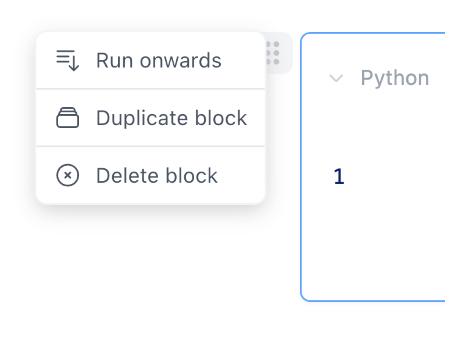 - Python blocks: for running Python code
