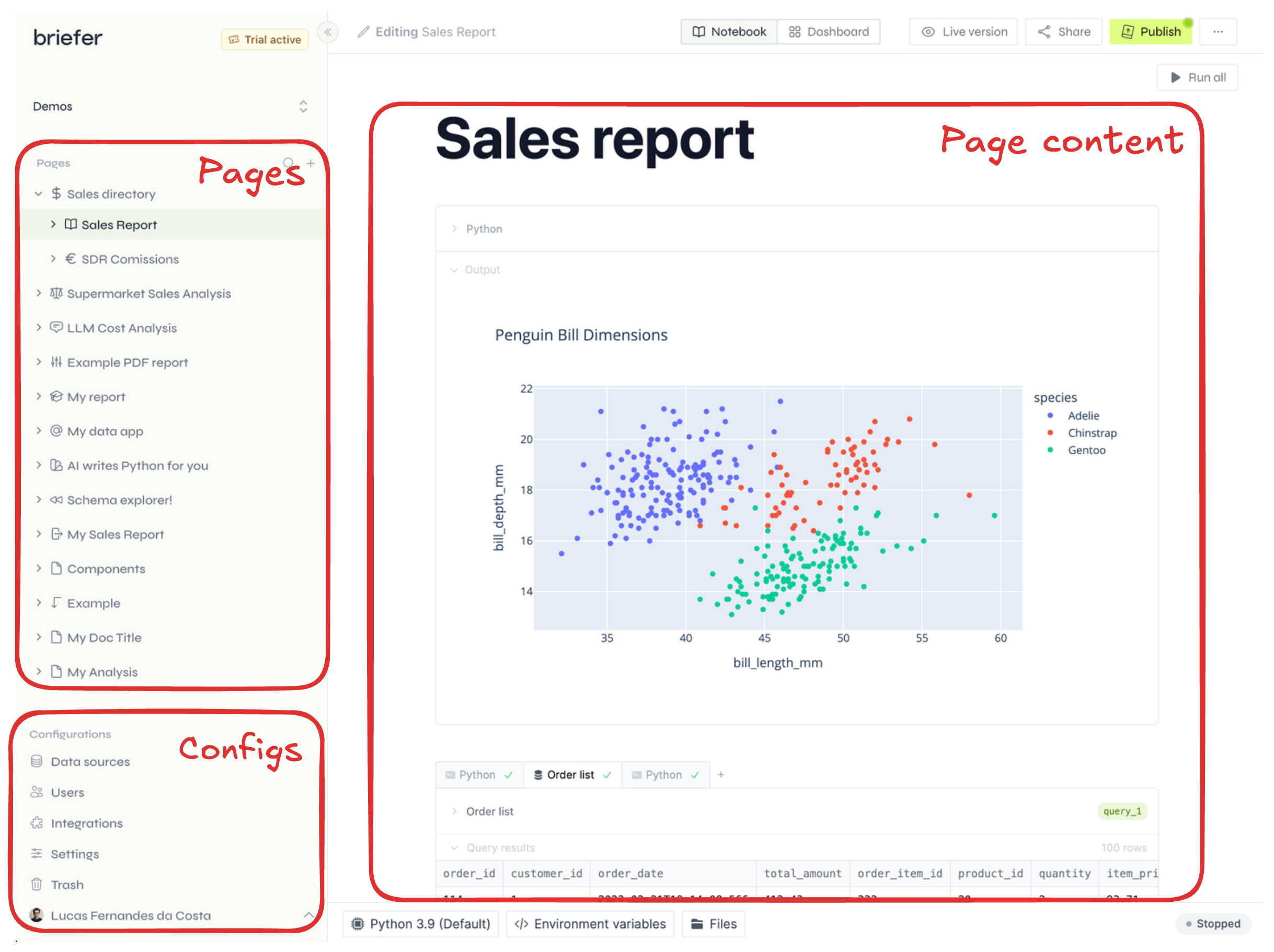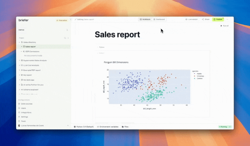 Briefer's main interface
